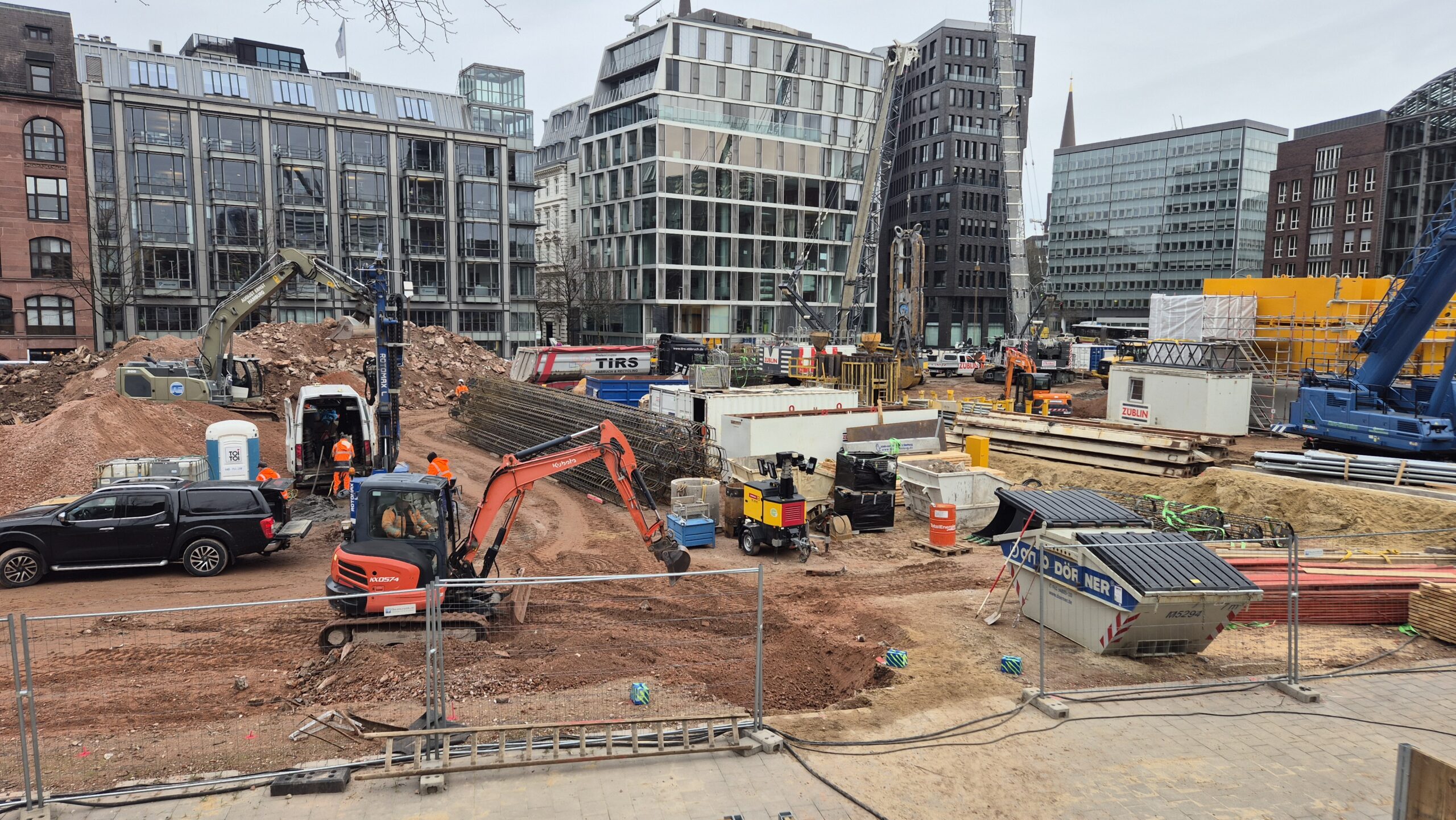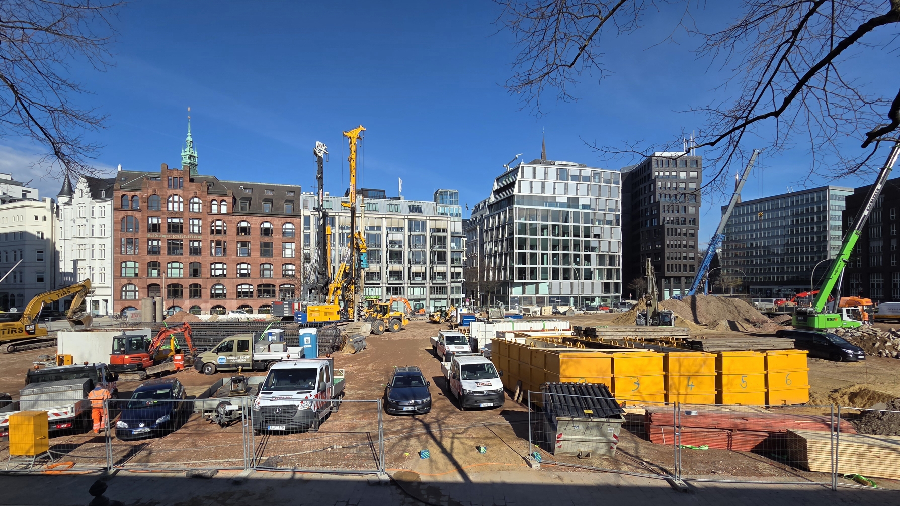 Aufgrund der dichten innerstädtischen Lage und der angrenzenden Bestandsbebauung ergeben sich hohe logistische Anforderungen an Planung und Ausführung des Bauvorhabens.